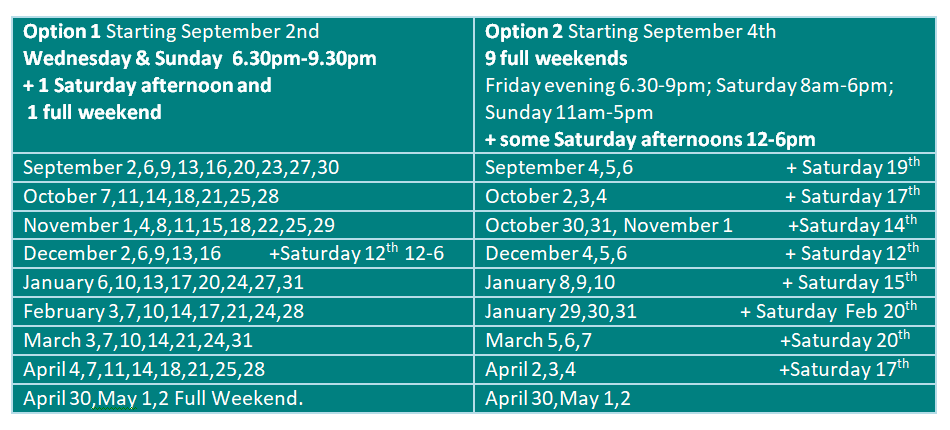 When completing the application form select your preference of the above two schedules, or if both will work, let us know. We will go with the option that suits most, or with both if there is sufficient interest.